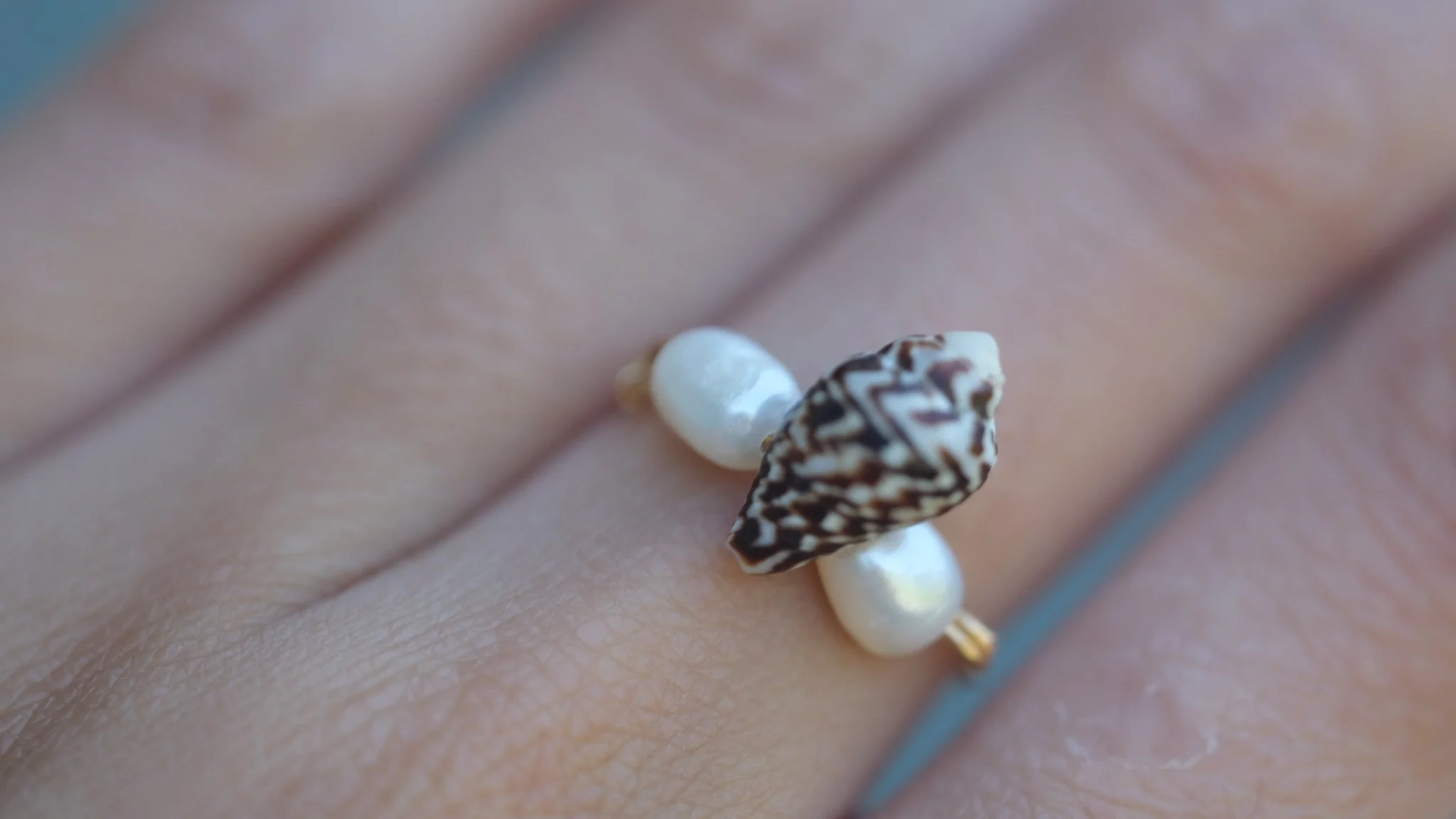 Delicate yet radiant, this handcrafted ring captures the essence of coastal elegance. A dainty gold-filled chain wraps a genuine seashell and luminous freshwater pearls that glisten like treasures found along the shoreline. Perfect for ocean lovers and dreamers at heart, this piece is a gentle reminder of salty breezes, golden hours, and the serenity of the sea.
